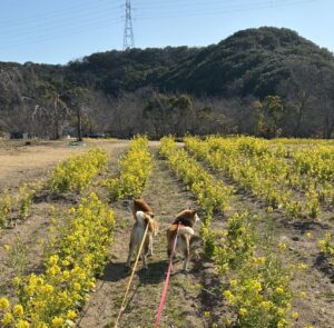 2月にしては暖かかったので、シャンプーをしてお散歩に出かけた チョコちゃんとそらくん親子 とても気持ちがよさそうですね